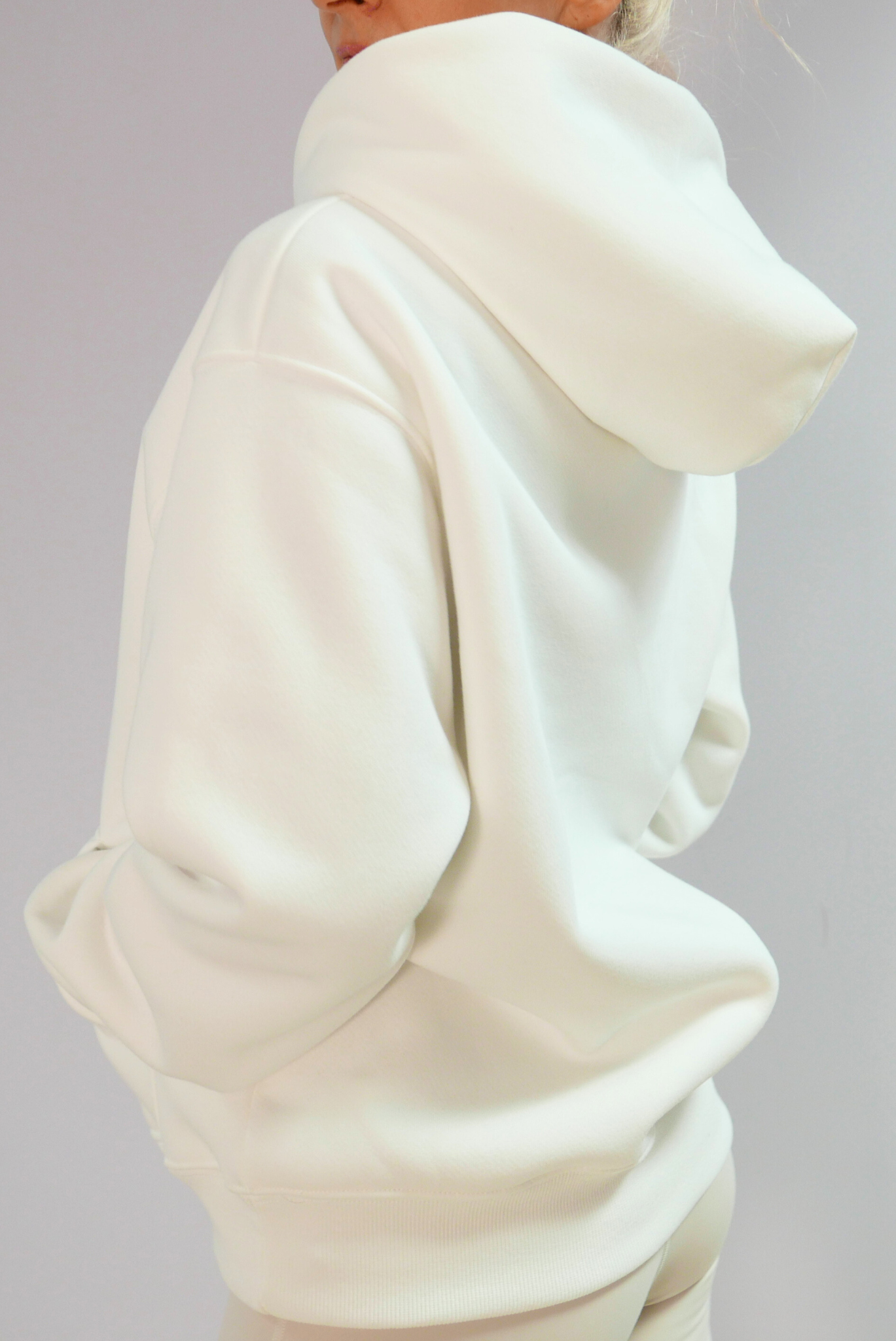 Lõige: naiselik oversize, suur kapuuts, ees praktiline tasku